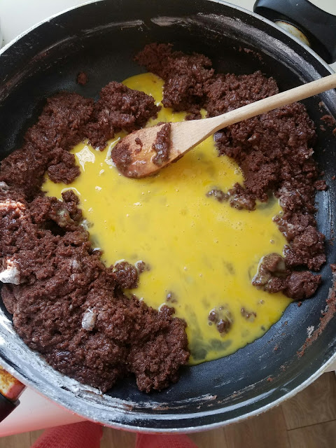》Stir in the rest of the Brownie ingredients *EXCEPT eggs and chocolate chunks